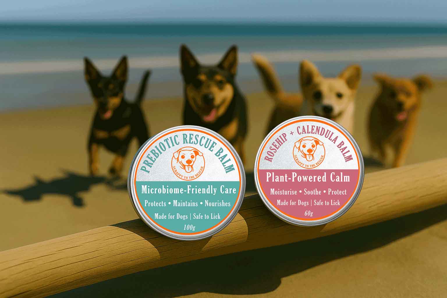 Our Prebiotic and Rosehip + Calendula dog balms deliver natural relief, nourishment, and lasting comfort for sensitive skin.